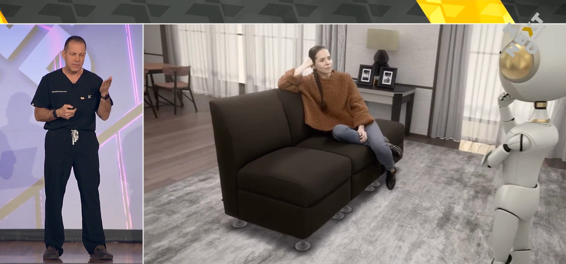 “What if instead of rolling a cart, your data floated in front of you?” he asked. He described his capstone project at Singularity University: a vision where XR overlays the patient’s EMR, imaging, and vitals directly into the clinician’s field of view—freeing up time, hands, and mental energy for human connection.