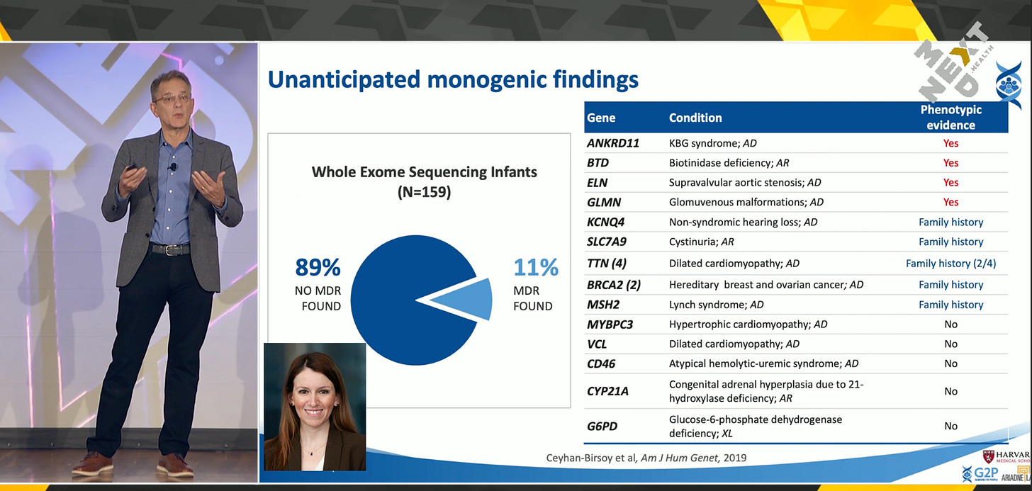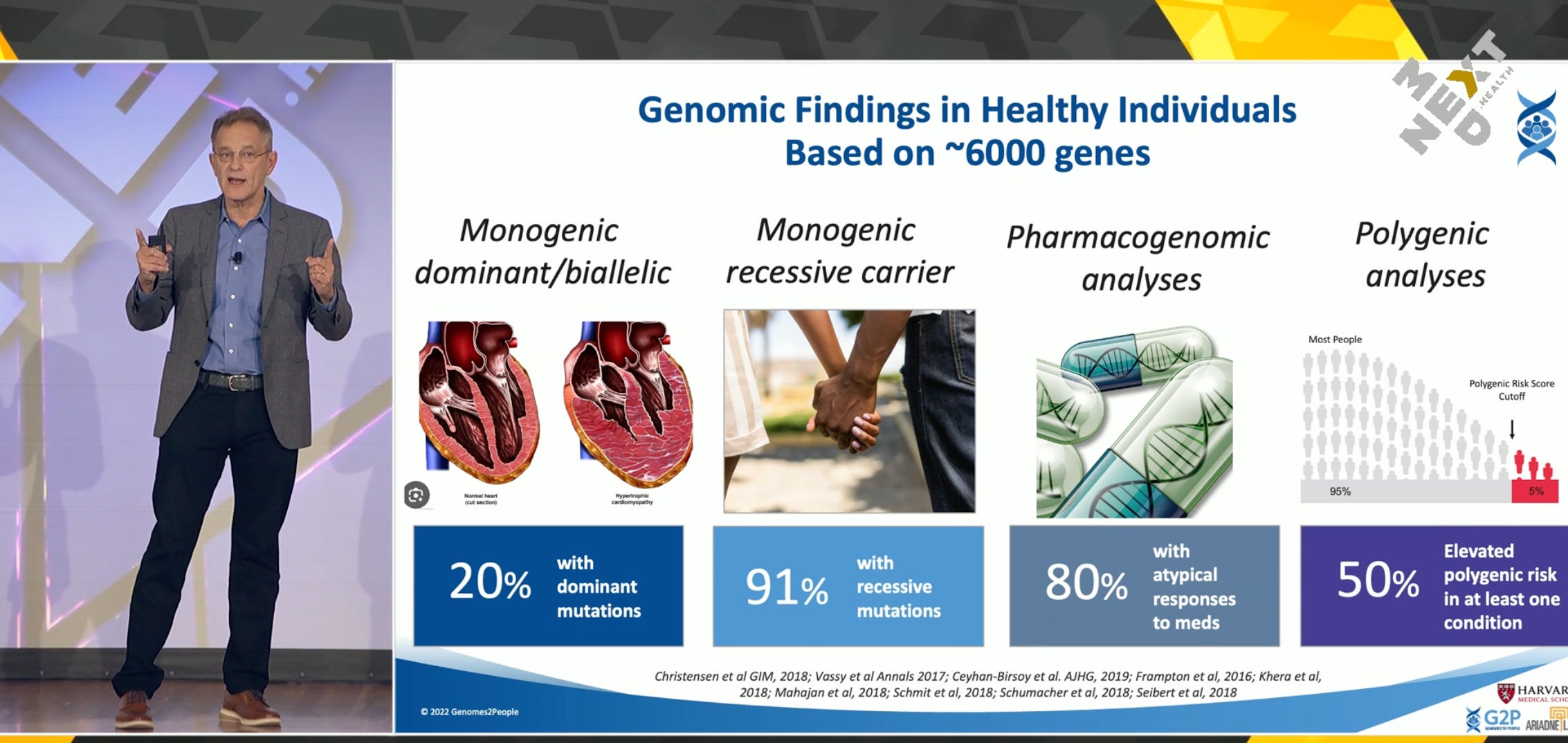 Dr. Green emphasized that nearly everyone carries some form of genetic risk. Analyzing roughly 5,000 disease-associated genes (the so-called medical exome) reveals that 15–20% of people carry dominant or bi-allelic recessive mutations linked to single-gene disorders. Most people are also carriers for recessive diseases, have atypical drug response profiles (pharmacogenomics), or carry elevated polygenic risk scores. While not everyone will develop a genetic disease, many unknowingly live with increased risk. Universal screening, especially at birth, could uncover and manage these risks much earlier.