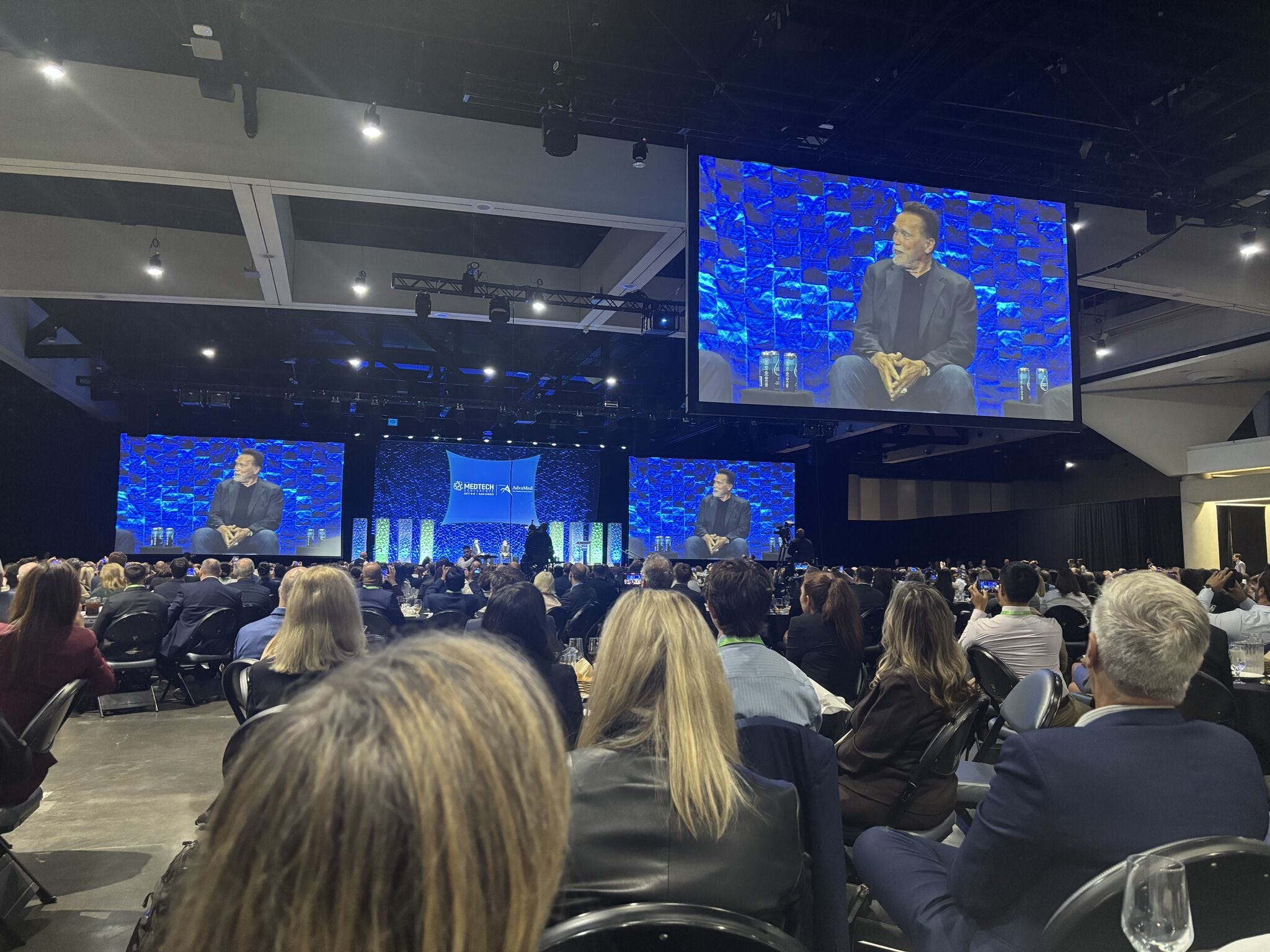 Watching Ah-nold inspire the group with humor and some solid takeaways.