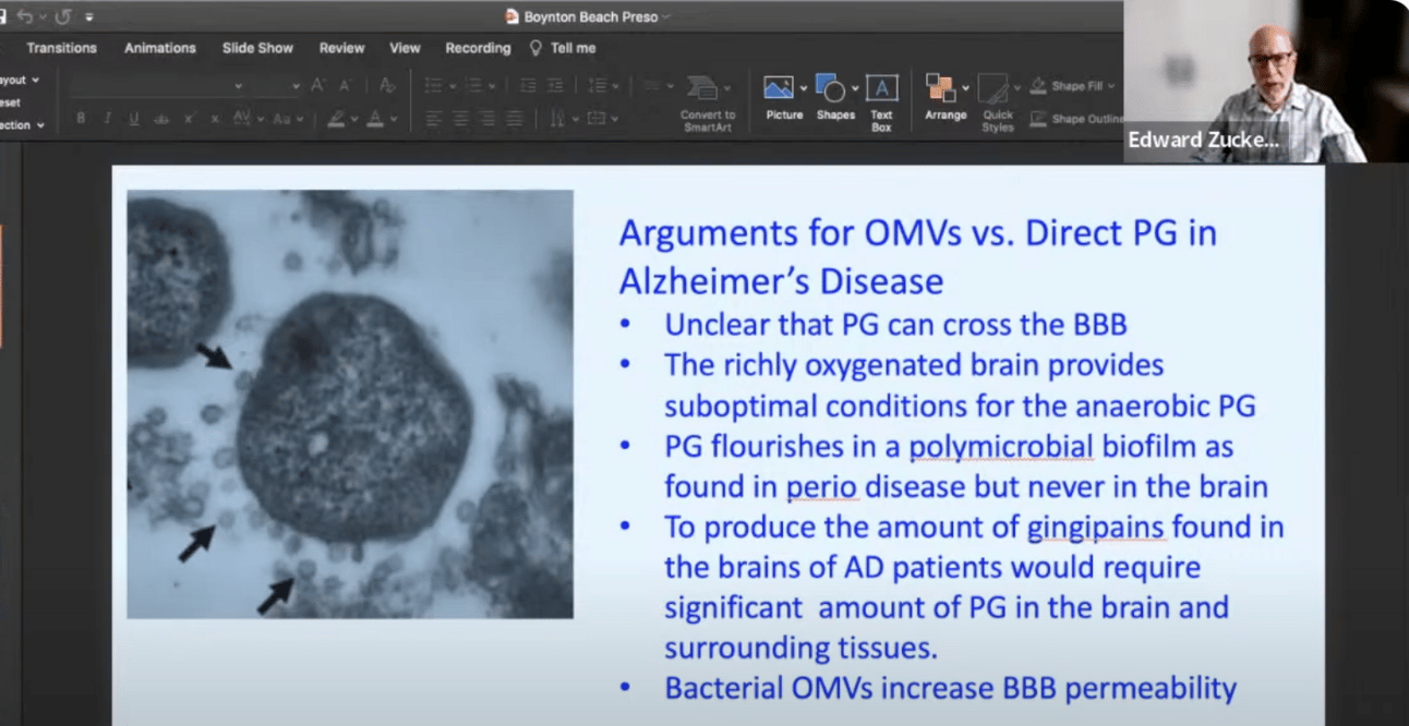 Dr. Edward Zuckerberg, Chief Dental Officer at Viome, notes, "While P. gingivalis itself can't cross the blood-brain barrier, these outer membrane vesicles carrying toxic proteins called gingipains are able to cross the blood-brain barrier. Once in the brain, they interfere with neuronal transmission, which is a driver of dementia."